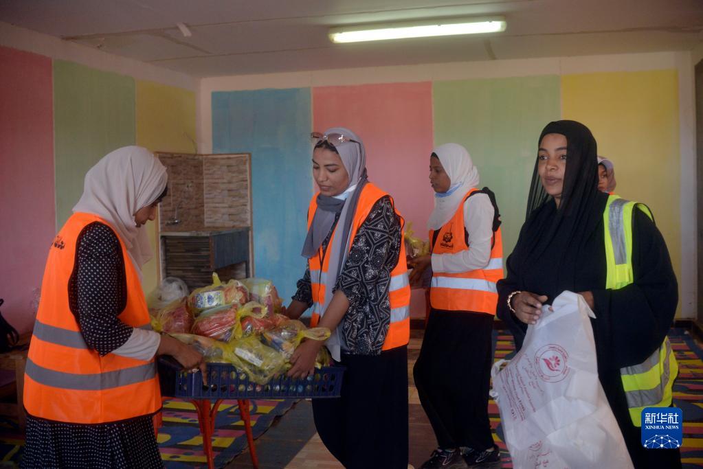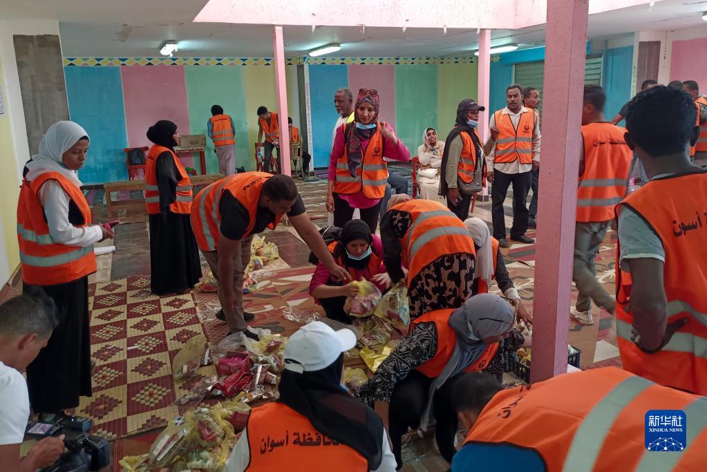 5月2日,在埃及南部阿斯旺省,工作人員為逃離蘇丹進(jìn)入埃及的難民準(zhǔn)備物資(手機(jī)拍攝)。