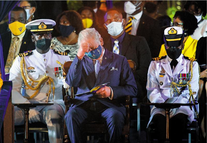圖:2021年11月,查爾斯(中)出席巴巴多斯共和國成立慶典。\路透社