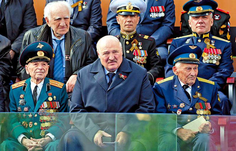 圖:盧卡申科(中)9日露面時(shí)狀態(tài)不佳。\美聯(lián)社