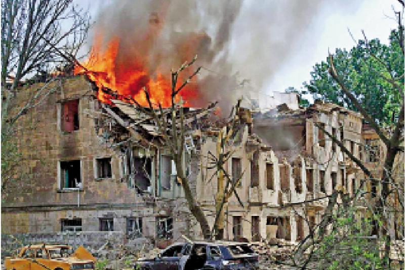 圖:烏克蘭第聶伯羅地區(qū)一間診所26日遭導(dǎo)彈轟炸起火。/路透社