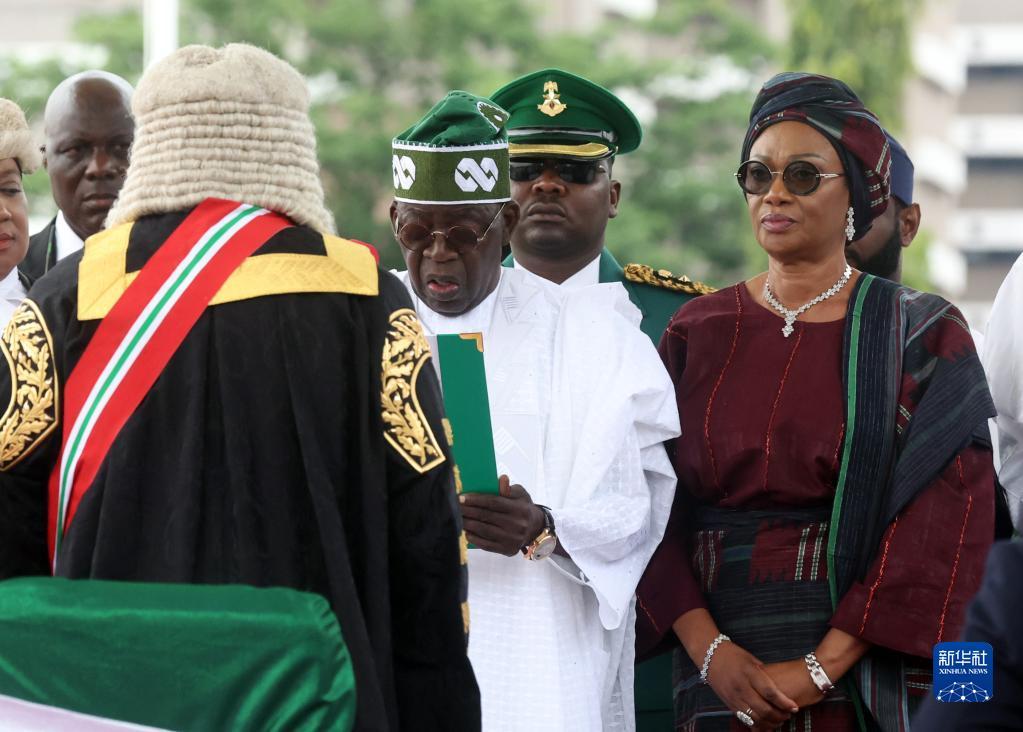 當(dāng)日,尼日利亞新當(dāng)選總統(tǒng)博拉·提努布在阿布賈宣誓就職。新華社發(fā)(索迪克攝)