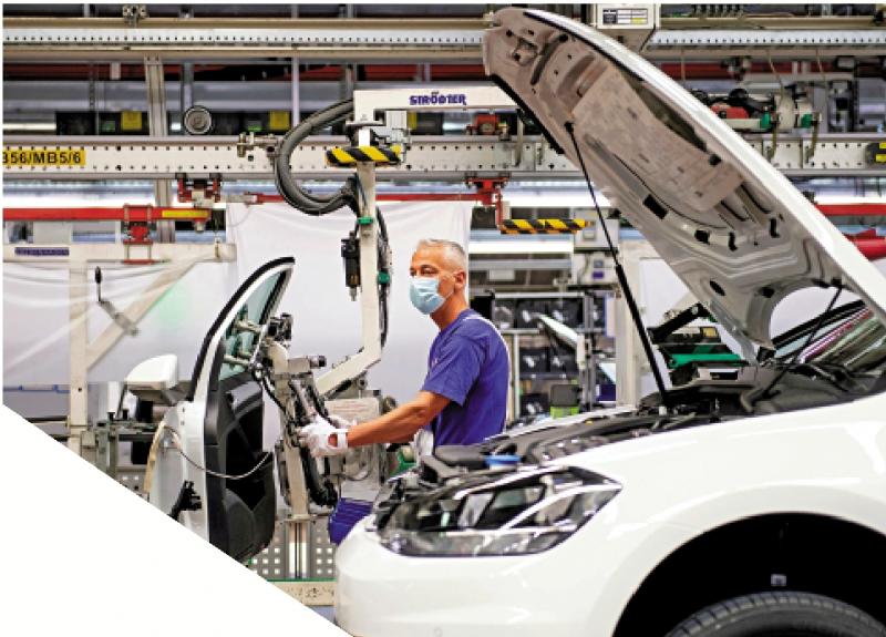 圖:德國藍(lán)領(lǐng)工人吃香,圖為德國工人在大眾汽車裝配線工作。\路透社