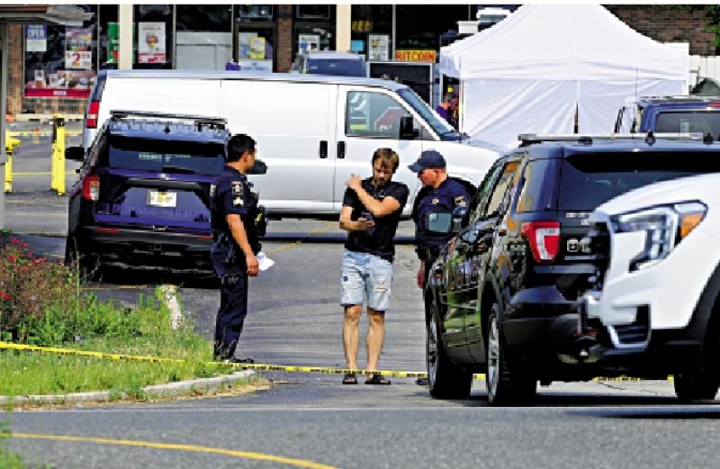 圖:芝加哥警方18日與槍案現(xiàn)場人員交談。\美聯(lián)社