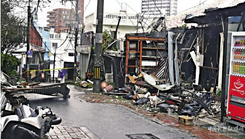圖:臺風(fēng)“卡努”2日吹襲沖繩,那霸市有建筑物受損。\美聯(lián)社
