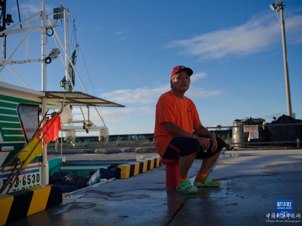 8月23日,打漁歸來的小野春雄坐在日本福島縣新地町的漁港。