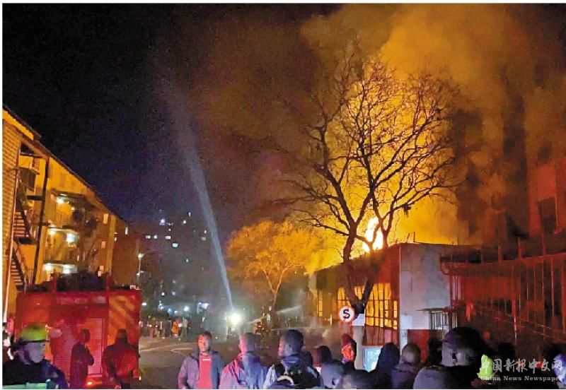 圖:南非約翰內(nèi)斯堡的一棟建筑8月31日發(fā)生火災(zāi)。\路透社