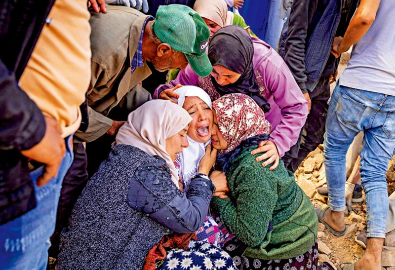 圖:摩洛哥災(zāi)區(qū)居民得知親人遺體被找到后失聲痛哭。\法新社