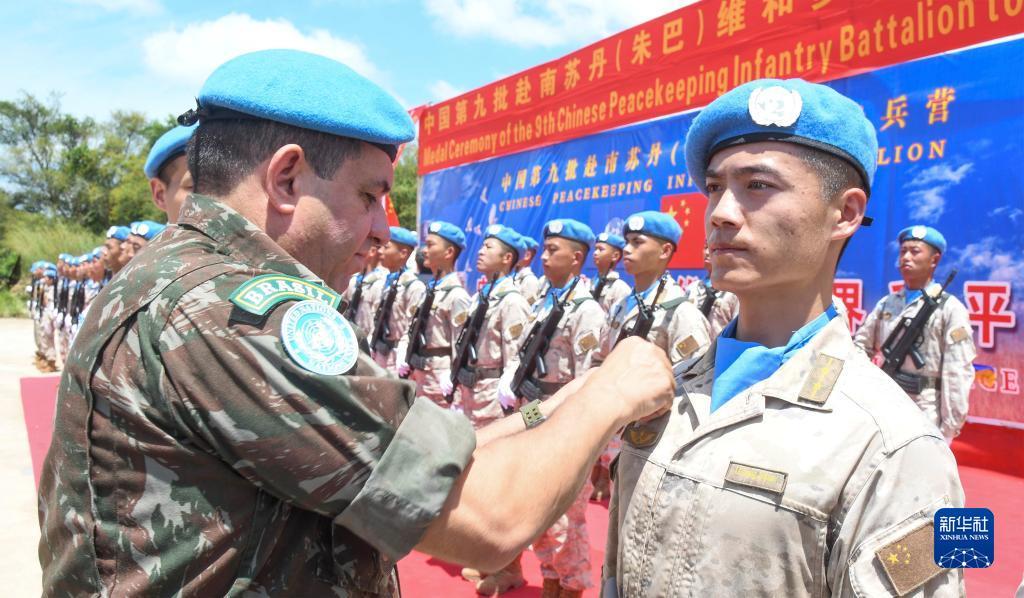 新華社內羅畢9月29日電(楊帆 戴天驕)朱巴消息:當?shù)貢r間9月28日,聯(lián)合國駐南蘇丹特派團(聯(lián)南蘇團)在其超級營地舉行授勛儀式,向中國第九批赴南蘇丹(朱巴)維和步兵營700名維和官兵授予聯(lián)合國“和平榮譽勛章”,以表彰他們在執(zhí)行維和任務期間的卓越表現(xiàn)和為南蘇丹和平事業(yè)作出的突出貢獻。