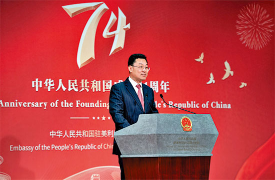 圖:9月27日晚,中國駐美國使館舉辦國慶招待會(huì),熱烈慶祝中華人民共和國成立74周年。