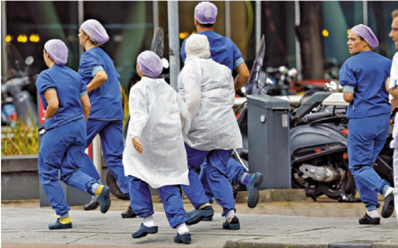 圖:荷蘭鹿特丹的醫(yī)療中心28日發(fā)生槍擊案,醫(yī)護(hù)人員匆忙撤離。\法新社