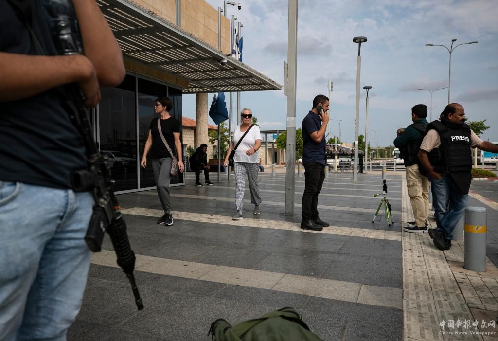 巴以新一輪武裝沖突后的第三天,在以色列邊境城市阿什凱隆的火車站,新聞?dòng)浾哒诘却囕v。