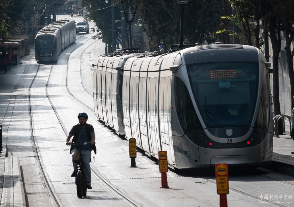 巴以新一輪武裝沖突后的第二天,耶路撒冷輕軌仍在運(yùn)營(yíng)。