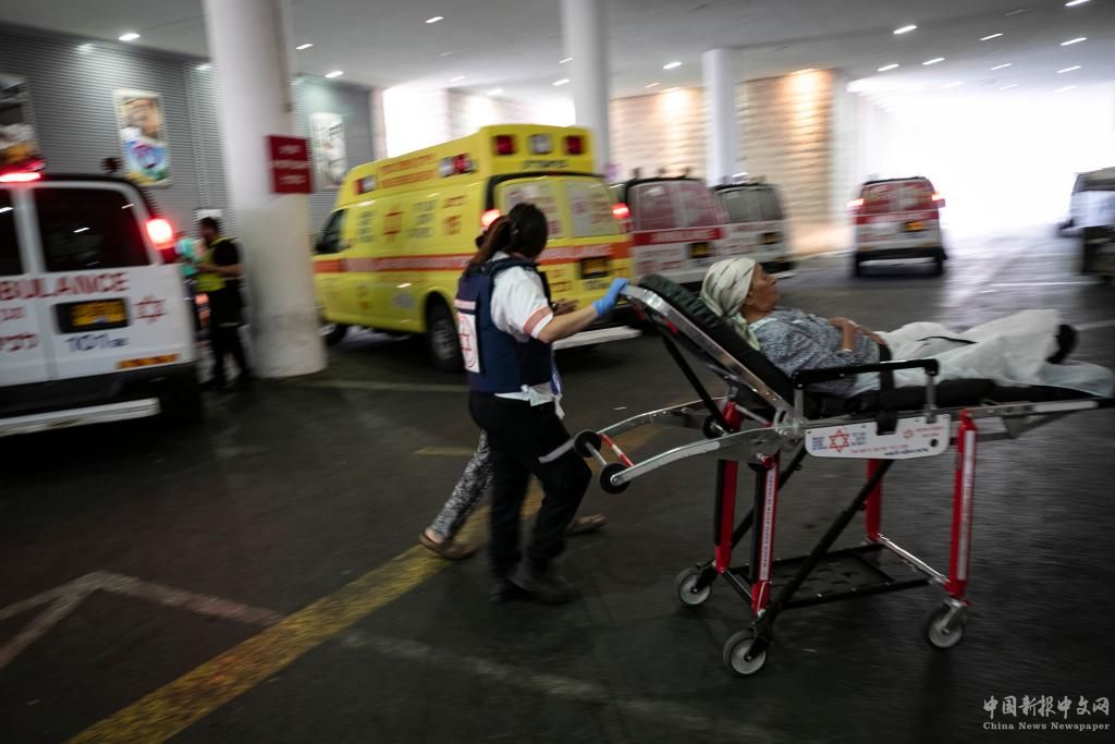 巴以新一輪武裝沖突后的第三天,在以色列邊境城市阿什凱隆一家收治前線傷員的醫(yī)院,傷員被源源不斷送到這里。
