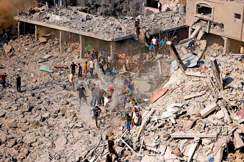 圖:民眾2日在加沙布雷吉難民營搜救。\法新社