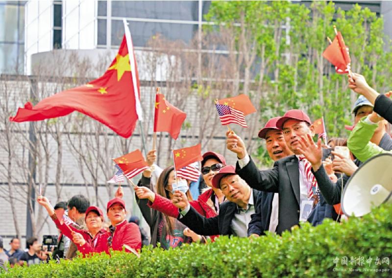 圖:美國華僑華人14日在舊金山歡迎中國領(lǐng)導(dǎo)人到訪。\中新社