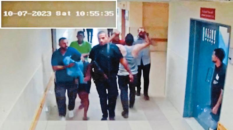 圖:以軍19日公布據(jù)稱是希法醫(yī)院的監(jiān)控錄像,聲稱畫面顯示哈馬斯將人質(zhì)帶入該醫(yī)院。\路透社
