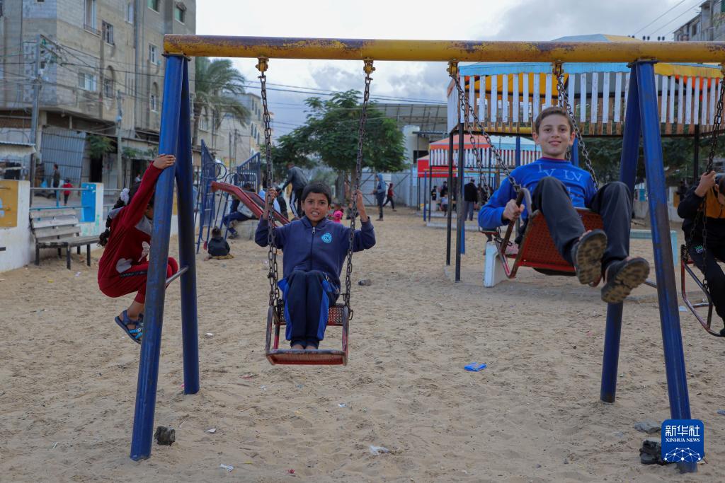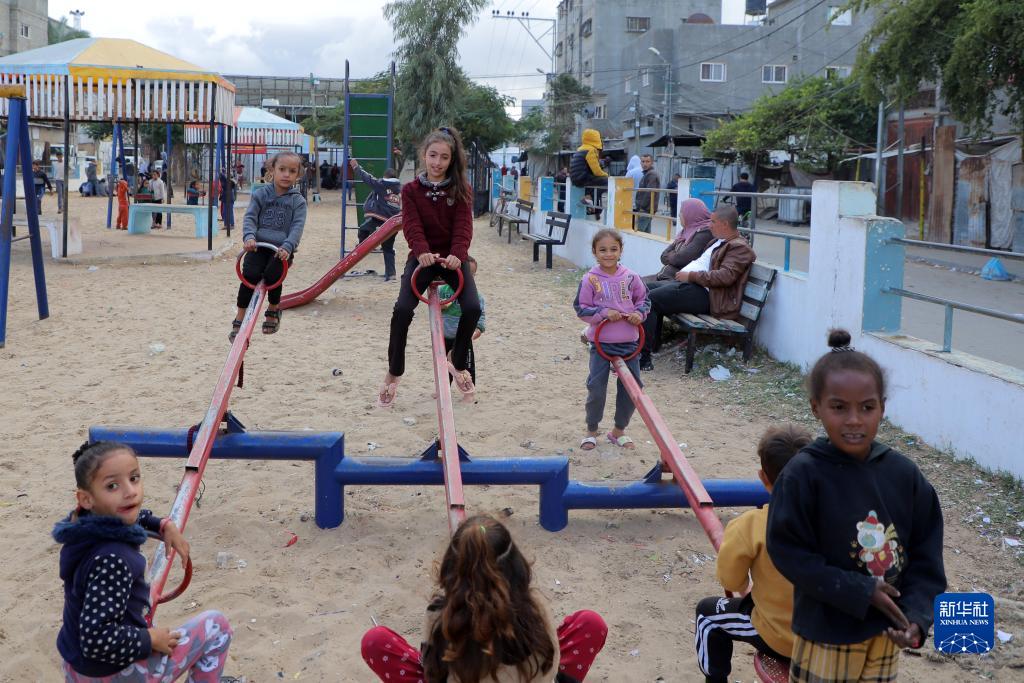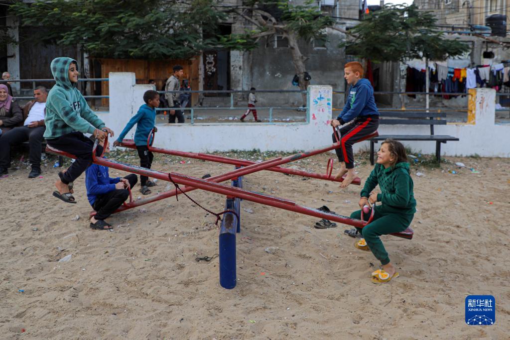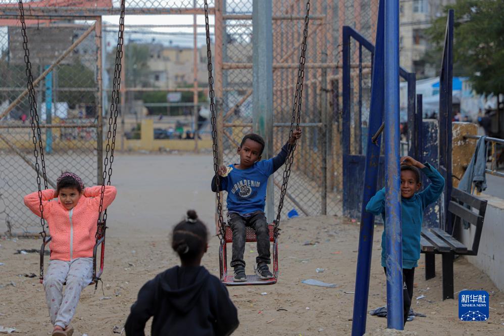 11月27日,孩子們在加沙地帶南部城市拉法一處公園玩耍。新華社發(fā)(里澤克·阿卜杜勒賈瓦德攝)