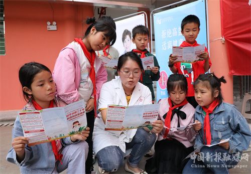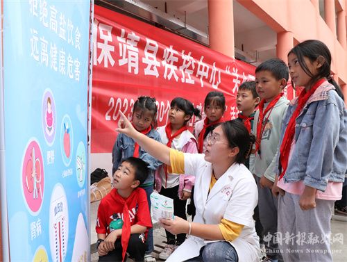 5月16日,湖南省保靖縣疾控中心工作人員在清水坪學校給學生講解科學補碘知識。 連日來,該縣疾控中心工作人員與關工委成員深入中小學校,開展“堅持科學補碘,建設健康家園”宣傳活動,讓學生了解碘缺乏病防治、科學補碘、識別碘鹽等知識。(俞采華)