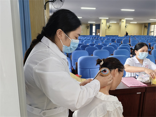 科普講座后進(jìn)行了義診。現(xiàn)場設(shè)立了多個(gè)義診服務(wù)臺(tái),為教職工免費(fèi)提供量血壓、測血糖、心電圖等各項(xiàng)健康檢查項(xiàng)目。來自各科室的專家為教職工們把脈問診,免費(fèi)提供常見病的咨詢?cè)\療服務(wù),針對(duì)他們的身體狀況給出合理化診療建議,進(jìn)行用藥指導(dǎo),并告知他們?cè)谌粘I钪械淖⒁馐马?xiàng)。同時(shí)開展的扶陽罐、針灸、中醫(yī)貼敷等中醫(yī)適宜技術(shù)體驗(yàn)項(xiàng)目也吸引教職工們踴躍參與體驗(yàn)。“平時(shí)的工作都很忙,沒有時(shí)間去醫(yī)院,這次縣中醫(yī)醫(yī)院的專家們來學(xué)校義診,不但給我們宣講了健康知識(shí),還給我們做了一些檢查,我覺得這次活動(dòng)蠻有意義的,衷心感謝縣中醫(yī)醫(yī)院為我校老師們提供如此貼心的服務(wù)!”二中一位陳老師說道。