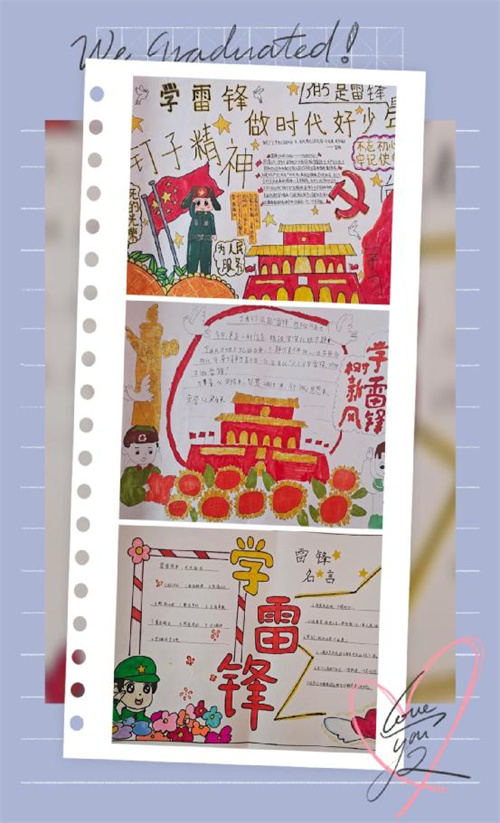 據(jù)了解,活動開展前,學校團委和少先大隊向各班發(fā)布了學雷鋒主題手抄報評比通知,要求各班以“學習雷鋒事跡,做時代好少年”為主題,介紹雷鋒事跡、弘揚雷鋒精神、營造學習氛圍,活動得到廣大學子的積極響應。比賽中,同學們以絢麗的色彩,直白的文字,訴說著對雷鋒精神的理解,五彩斑斕的畫作主題鮮明、內(nèi)容豐富、形式新穎、色彩和諧,字體多樣,版塊欄目劃分清晰,把對雷鋒的崇敬和懷念之情深深融入到手抄報創(chuàng)作之中。