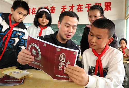 4月14日,湖南省保靖縣清水坪派出所的民警在野竹坪小學(xué)為學(xué)生講解國家安全知識。“全民國家安全教育日”來臨,該縣多所學(xué)校開展國家安全知識教育活動,通過主題宣講、觀看展牌、視頻展播、發(fā)放材料等形式,向?qū)W生普及國家安全法、網(wǎng)絡(luò)安全法等國家安全相關(guān)法律法規(guī)知識,增強(qiáng)學(xué)生的國家安全意識。(俞采華 佘高衛(wèi))