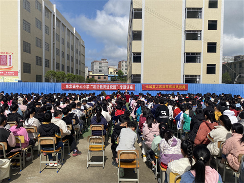 4月28日,從 獲悉汝城縣泉水鎮(zhèn)中心小學(xué),為貫徹落實(shí)上級(jí)教育行政部門對(duì)做好學(xué)校未成年人保護(hù)和法治教育工作的安排部署,增強(qiáng)全體師生法治意識(shí)。近日,汝城縣泉水鎮(zhèn)中心小學(xué)邀請(qǐng)汝城縣人民法院法官到校開(kāi)展“法治教育進(jìn)校園”專題講座。全體師生800余人參加講座。