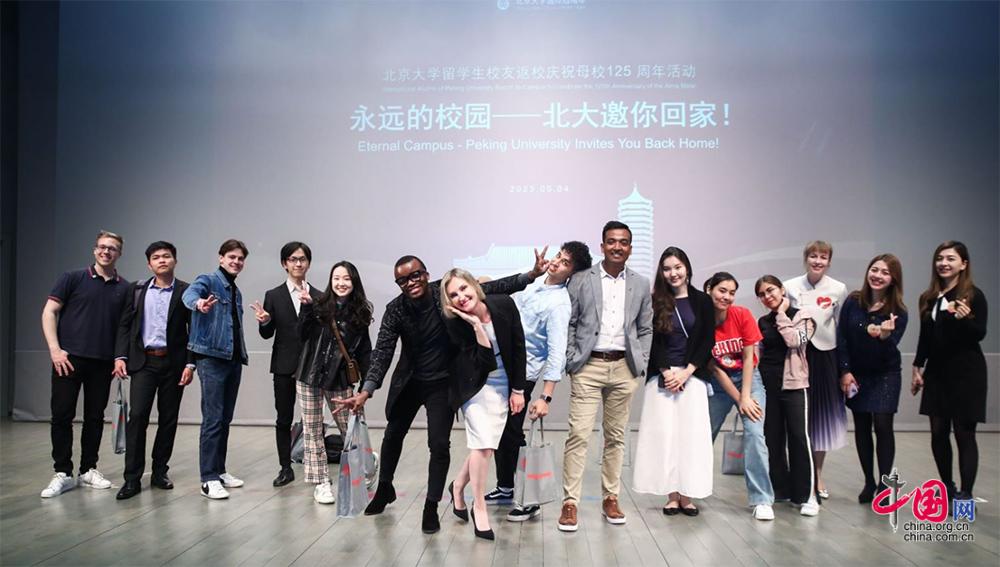 中國網(wǎng)訊 (記者 佟明月)2023年5月4日下午,以“永遠(yuǎn)的校園——北大邀你回家!”為主題的北京大學(xué)留學(xué)生校友返校慶祝母校125周年活動(dòng)在百周年紀(jì)念講堂舉行。來自全球15個(gè)國家地區(qū)的留學(xué)生校友、在校留學(xué)生、校外嘉賓及校內(nèi)院系和職能部門師生代表歡聚一堂。