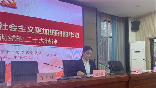 為進(jìn)一步學(xué)習(xí)貫徹黨的二十大精神,提升黨性修養(yǎng),補(bǔ)足精神之鈣,把穩(wěn)思想之舵,衡陽市第三中學(xué)黨總支開展“感悟黨的二十大,奮發(fā)青春正當(dāng)時”系列主題黨日活動。5月24日,中共湖南省第十二次代表大會代表、該校黨總支副書記、校長胡春輝以《譜寫新時代中國特色社會主義更加絢麗的華章》為題做黨課宣講,全體黨員與入黨積極分子參會。