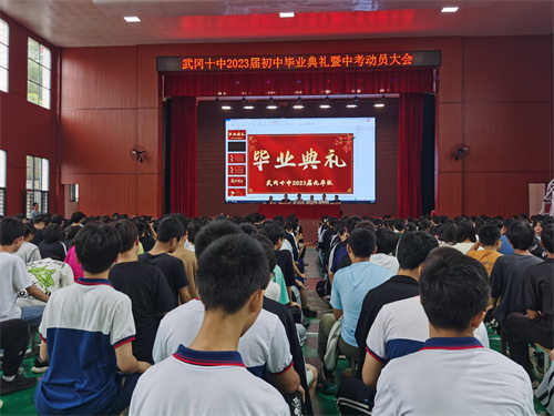 大會(huì)在嘹亮的國歌和莊嚴(yán)的升旗儀式中拉開序幕,校長劉志軍代表全體師生作了非常精彩地畢業(yè)致辭,向辛勤勞動(dòng)的老師們、發(fā)奮苦讀的同學(xué)們表示衷心地感謝和美好地祝愿;王青華老師代表全體老師發(fā)表了畢業(yè)贈(zèng)言;每班一名學(xué)生代表分別表達(dá)了畢業(yè)感言;教導(dǎo)處肖主任和政教副校長周科華作了非常細(xì)致認(rèn)真的考前動(dòng)員與安全教育;黨總支副書記夏文強(qiáng)作了總結(jié)講話,他說你們是伴隨著新十中三年共同成長的光榮一代,是新十中全面建設(shè)全新發(fā)展和輝煌歷史的見證者,肩負(fù)著新時(shí)代中華民族偉大復(fù)興的歷史重任;緊張而有意義的三年初中生活即將結(jié)束,同學(xué)們也迎來人生道路上的又一次學(xué)業(yè)大考,希望同學(xué)們,永遠(yuǎn)牢記武岡十中的校訓(xùn):“厚德、博學(xué)、求真、創(chuàng)新”,在未來的人生道路上努力爭(zhēng)做“明大德、存大愛、立大志、謀大事、擔(dān)大任、成大業(yè)”新時(shí)代好青年,用文化智慧和奮勇拼搏去書寫不愧于新時(shí)代,無愧于正青春的華彩篇章!