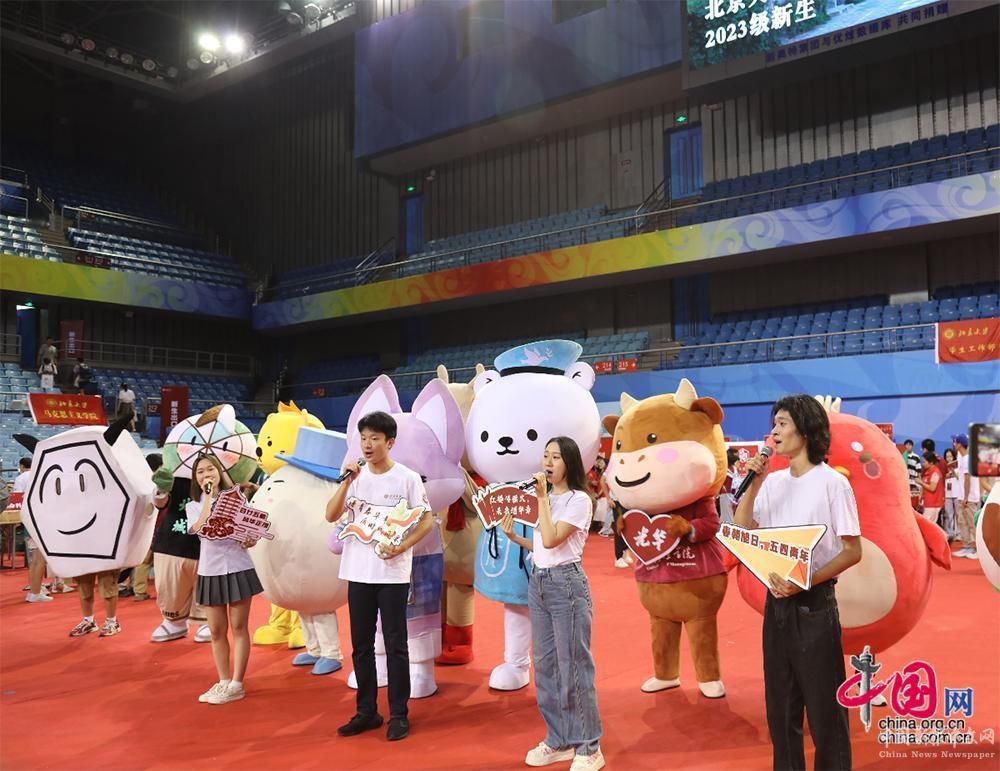 8月19日,北京大學邱德拔體育館,各學院的學長學姐們表演歌曲串燒,點燃全場氣氛。中國網(wǎng)記者 汪雅雯攝