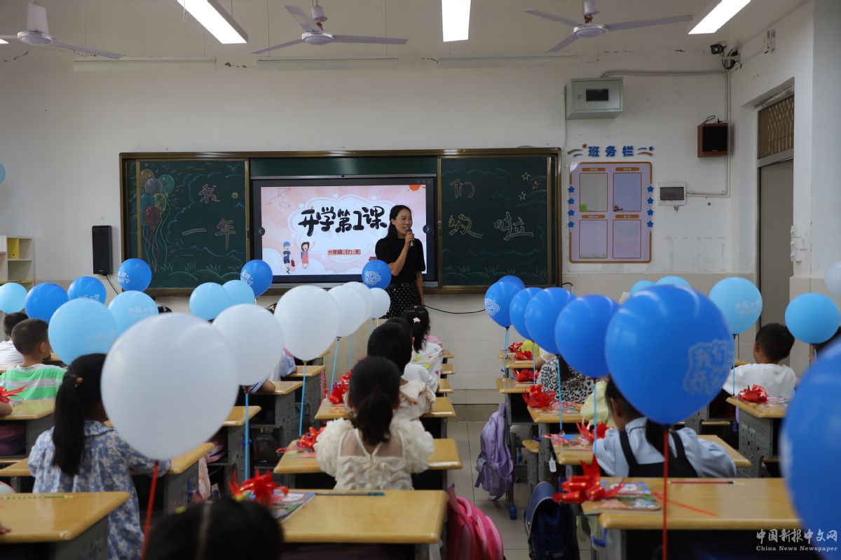 立鶴小學(xué)一年級(jí)學(xué)生入學(xué)在教室的場(chǎng)景(顏微 攝)