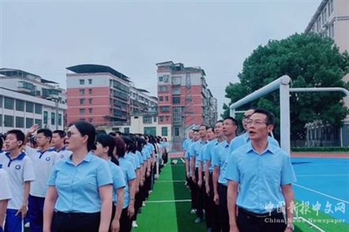 黨支部書記肖茂哲作國(guó)旗下講話,囑咐同學(xué)們:要堅(jiān)持文化自信,傳承中華優(yōu)秀傳統(tǒng)文化;要志存高遠(yuǎn),胸懷天下,為中華之崛起而讀書;要勤學(xué)苦練,以飽滿的熱情,刻苦學(xué)習(xí);要不畏艱難,昂揚(yáng)斗志,以優(yōu)異的成績(jī)向國(guó)慶獻(xiàn)禮。