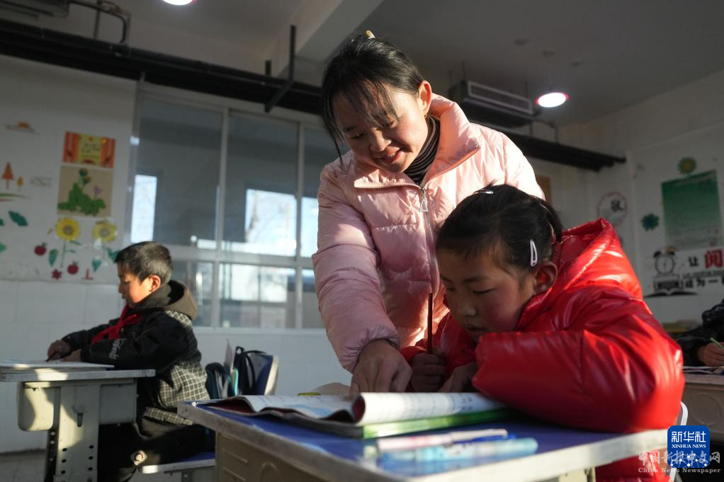 12月25日,積石山縣柳溝鄉(xiāng)陽山希望小學(xué)的老師給學(xué)生輔導(dǎo)。
