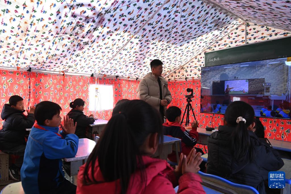 隨著震后生產(chǎn)生活秩序逐步恢復(fù),甘肅臨夏州積石山縣當(dāng)?shù)刂行W(xué)本周按照“線上與線下相結(jié)合、學(xué)校教學(xué)與臨時(shí)教學(xué)點(diǎn)相結(jié)合”的原則有序復(fù)課,150多個(gè)臨時(shí)教學(xué)點(diǎn)開(kāi)課,千余名教師下沉一線開(kāi)展教學(xué)輔導(dǎo)。