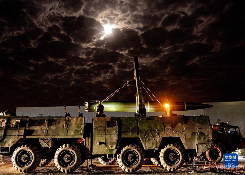 這是演練前夜參演火箭軍某部在進行轉(zhuǎn)載導(dǎo)彈訓(xùn)練(4月7日攝)。新華社發(fā)(劉明松 攝)