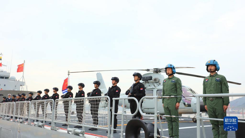 4月28日,中國(guó)海軍第44批護(hù)航編隊(duì)從浙江舟山某軍港解纜起航,隨艦機(jī)組、特戰(zhàn)隊(duì)員在甲板整齊列隊(duì)。