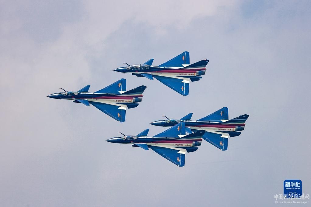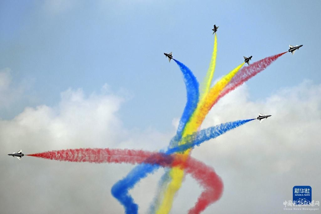 7月26日,在2023年空軍航空開(kāi)放活動(dòng)·長(zhǎng)春航空展上,空軍八一飛行表演隊(duì)進(jìn)行飛行表演。新華社記者 顏麟蘊(yùn) 攝