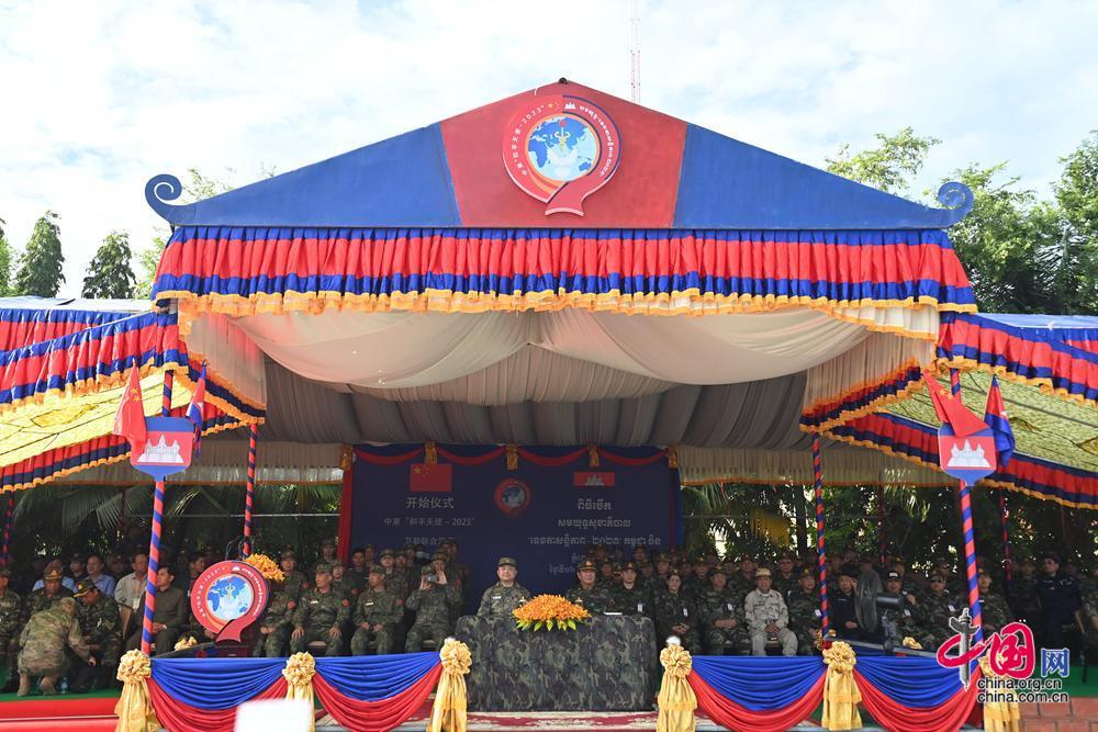 中柬”和平天使_2023“衛(wèi)勤聯(lián)合演習開始儀式。