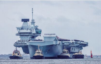 10月13日,英國海軍“伊麗莎白女王”號航母駛?cè)肴鸬湮髂喜砍鞘懈绲卤じ劭凇?/p>
