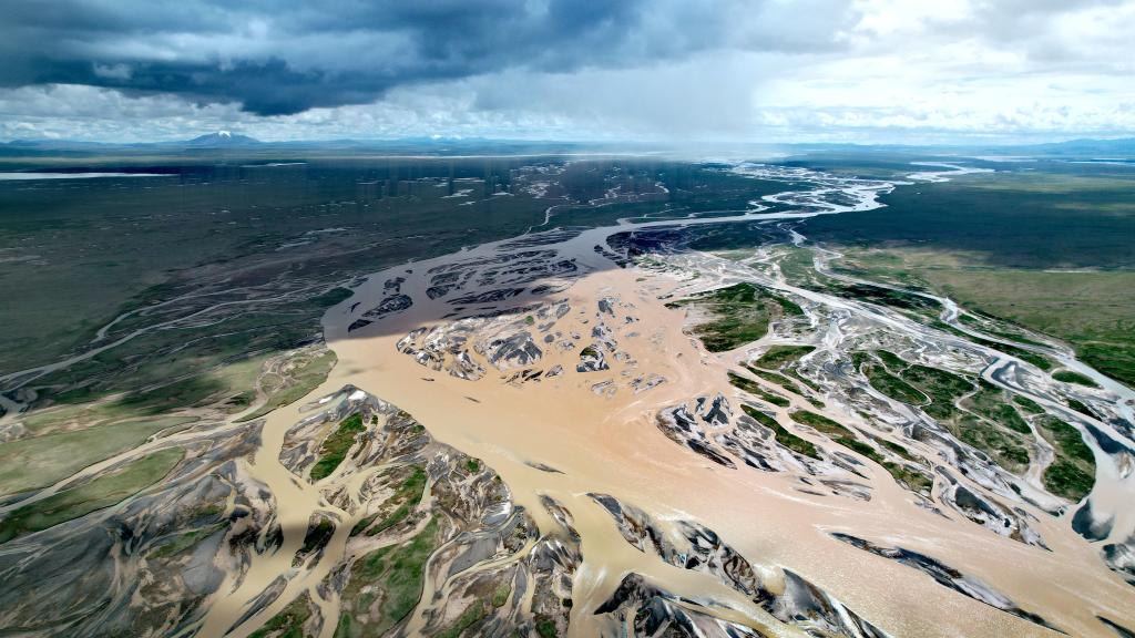 李志威表示,河水中的懸沙和床面附近的推移質(zhì)泥沙的不斷交換,導(dǎo)致辮狀河道的河床在洪水期處于快速沖淤調(diào)整之中。汛期在源頭區(qū)的冰川侵蝕、流水侵蝕和搬運作用下,洪水從上游攜帶大量不同粒徑的泥沙。當洪水流到河床寬闊處,地勢平緩、流速變慢,泥沙發(fā)生堆積,形成水下心灘和邊灘。洪峰過后枯水季節(jié)時,一些淺灘露出水面成為沙洲或江心洲,相鄰沙洲之間是多股的河道,河道分分合合,正是“辮狀河流”的由來。當下次洪水到來時,有的沙洲被淹沒,并被流水侵蝕形成新的汊道。每次洪水過后,舊的河槽和沙洲面目全非,辮狀河道呈現(xiàn)新貌。