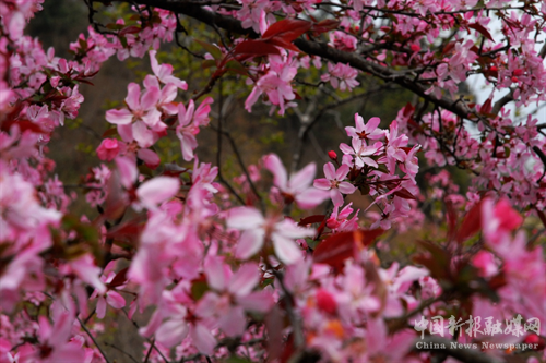 4月4日,在海拔1200多米的高寒山區(qū),新寧黃金瑤族鄉(xiāng)圳水村九龍?zhí)辽焦戎?,千余株嬌艷欲滴的野生垂絲海棠迎著春光悄然綻放,奏響春天的樂章。