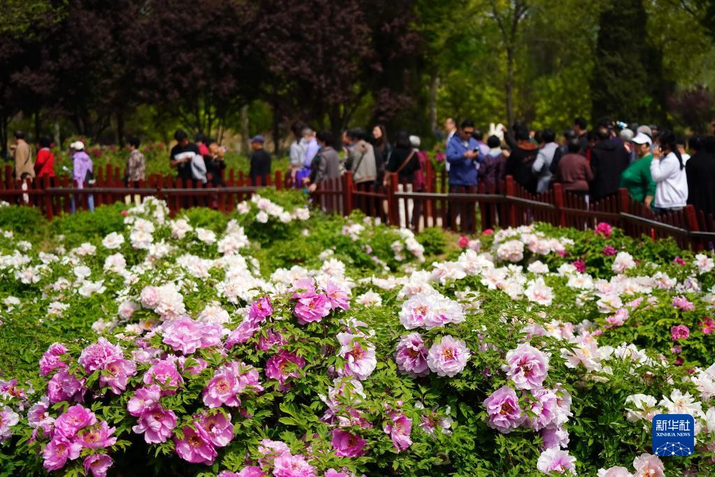 4月18日,游客在河北省柏鄉(xiāng)縣漢牡丹園游覽。