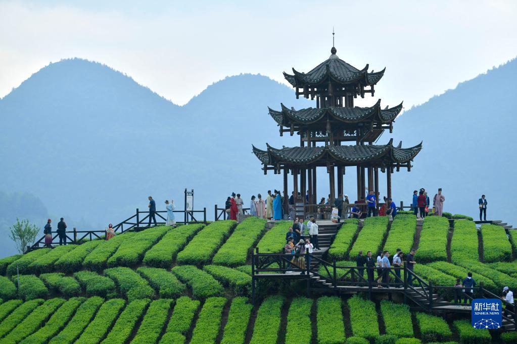 4月21日,游客在宣恩縣伍家臺(tái)村茶園游覽。
