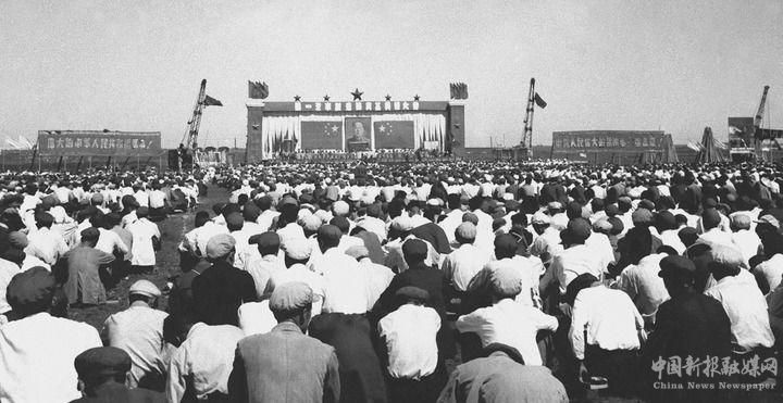 1953年7月15日,第一汽車制造廠在吉林省長春市奠基。這是一汽奠基典禮大會會場(資料照片)。新華社發(fā)