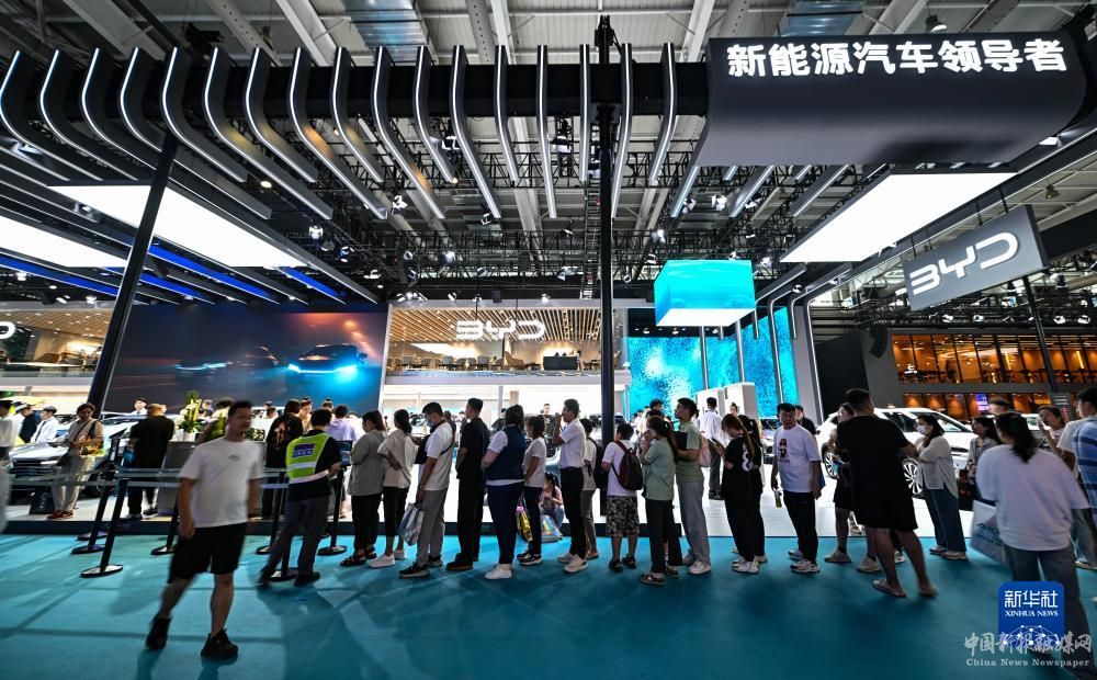 7月17日,觀眾在長春汽博會比亞迪品牌汽車展區(qū)前排隊(duì)等待入場。