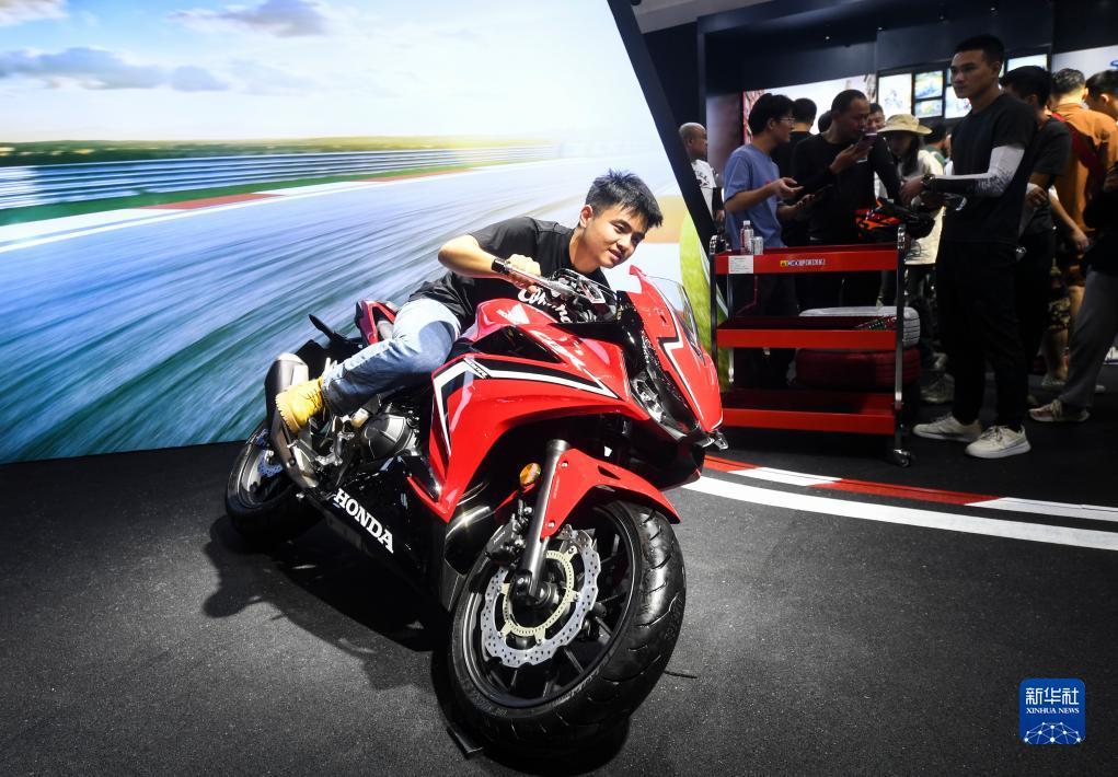 9月15日,觀眾在第二十一屆中國(guó)國(guó)際摩托車博覽會(huì)上參觀、體驗(yàn)。