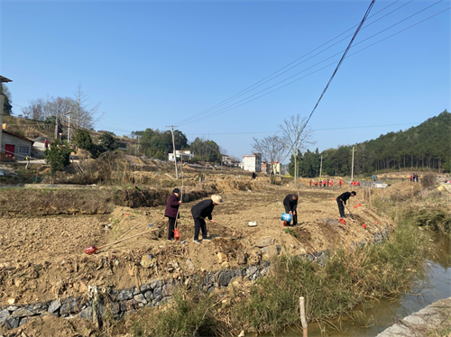 3月14日上午9點不到,邵陽市美麗鄉(xiāng)村創(chuàng)建示范村新寧縣坪山村內(nèi)歡聲笑語,洋河壩、細石山、邵陽市最美庭院——初心苑旁等多處植樹現(xiàn)場,黨旗在鄉(xiāng)村振興田間地頭迎風(fēng)飄揚,身著紅色志愿者的三月“雷鋒”們,充分發(fā)揮“領(lǐng)導(dǎo)帶頭,干部先上”的表率作用,有的揮鋤挖坑、有的扶苗培土、有的提桶澆水,默契配合栽下一株株紫薇樹苗,好一派助力鄉(xiāng)村振興和美鄉(xiāng)村建設(shè)的忙碌景象。在新寧縣馬頭橋鎮(zhèn)黨委政府干部和工作人員、駐村工作隊隊員、村民代表、黨員志愿者、村鄉(xiāng)風(fēng)文明理事會和女子先鋒隊骨干成員等100余人組成的三月“雷鋒”團的努力下,一個多小時后1000余株紫薇樹在坪山村“安家落戶”,充分展現(xiàn)了基層黨組織的號召力和凝聚力,為和美鄉(xiāng)村建設(shè)種下了一抹“生態(tài)綠”。種完樹后,大家把剩余垃圾全部帶走,并對植樹地點周邊環(huán)境進行了清理和打掃。