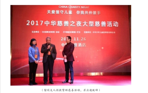 2017年央視舉辦“關愛留守兒童”慈善晚會偕同夫人捐款