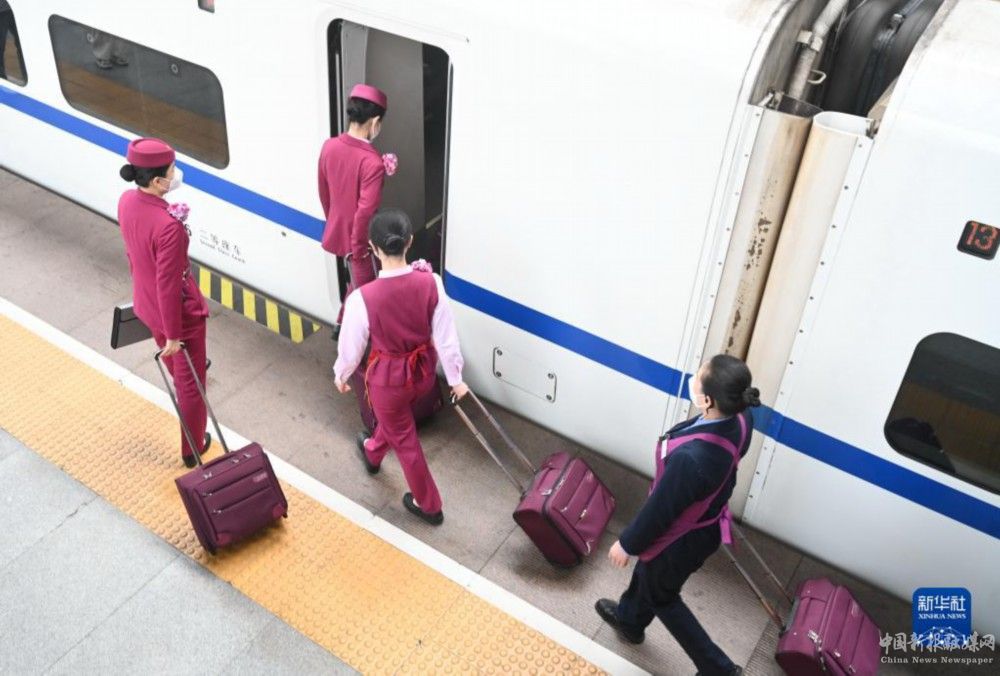 4月1日,中國鐵路南昌局集團(tuán)有限公司福州客運段工作人員登上從福州火車站開往香港西九龍的G3001次列車。新華社記者林善傳攝