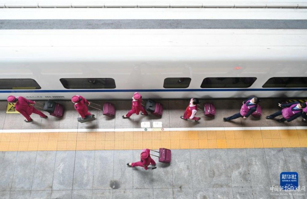 4月1日,中國鐵路南昌局集團(tuán)有限公司福州客運段工作人員在站臺上行走,準(zhǔn)備登上從福州火車站開往香港西九龍的G3001次列車。 新華社記者林善傳攝